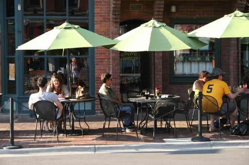 Habe ich schon geschrieben, dass es mir hier gut gefällt? Ein (umstrittenes) Hochhaus ist gerade im Bau, ansonsten sind die Häuser zwei bis drei Stockwerke hoch, sehr unterschiedlich, bunt und hauptsächlich aus Ziegelsteinen. In den Außenbezirken gibt es herrschaftliche Anwesen und Verbindungshäuser im Stil der Südstaaten, umgeben von perfekt geschnittenen Rasenflächen. Bäume gibt's in den breiten Straßen und sehr entspannte Menschen- junge und schöne natürlich, aber auch der Mittelbau kann sich sehen lassen, man merkt, die Uni liegt mitten in der Stadt.